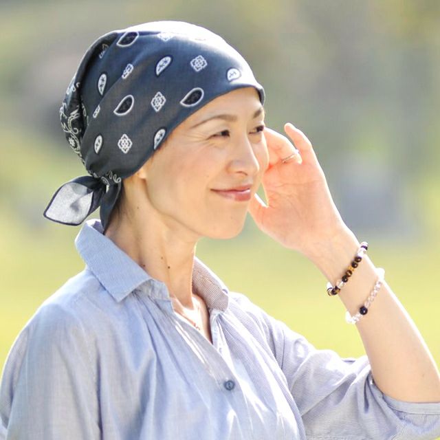 抗がん剤治療での脱毛ケアに便利な、大きいバンダナです。