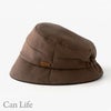 帽子の横に、小さな茶色のワンポイント飾り。 つばの縁取りも手間をかけています。 品のある主張しすぎないデザインですので、若い方にもご年配の方にもきっとお似合いです。