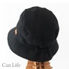 この帽子のサイズ調整は「ウエストゴムのパンツ」のように、帽子のうしろ部分に10センチほどのゴムを入れてあります。 マジックテープやリボンなどで、サイズ調整するのが苦手なご年配の方でも楽ちんです。