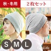 秋冬用/医療用帽子<就寝用>消臭抗菌・脱毛ケア帽子【炭のチカラ帽子】ダブル2枚重ね(2枚セット)