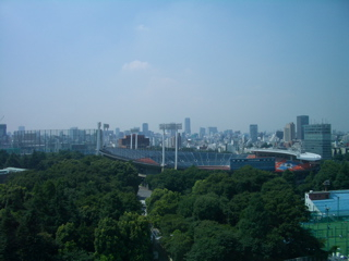 ここの大きな窓から、神宮外苑一帯が一望できます。